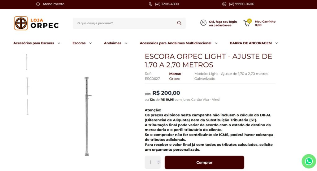 Explore a linha completa de escoras, andaimes e acessórios, com informações claras e compra direta.